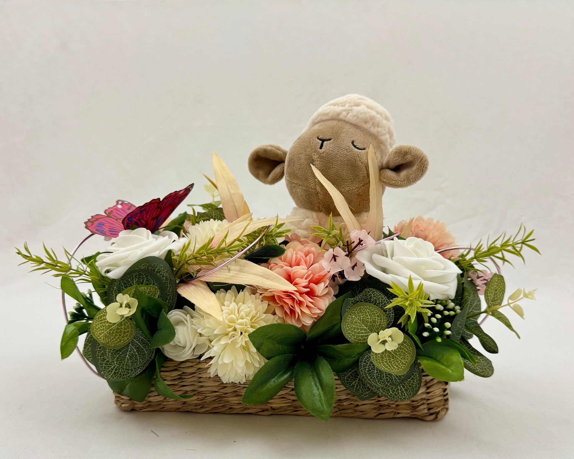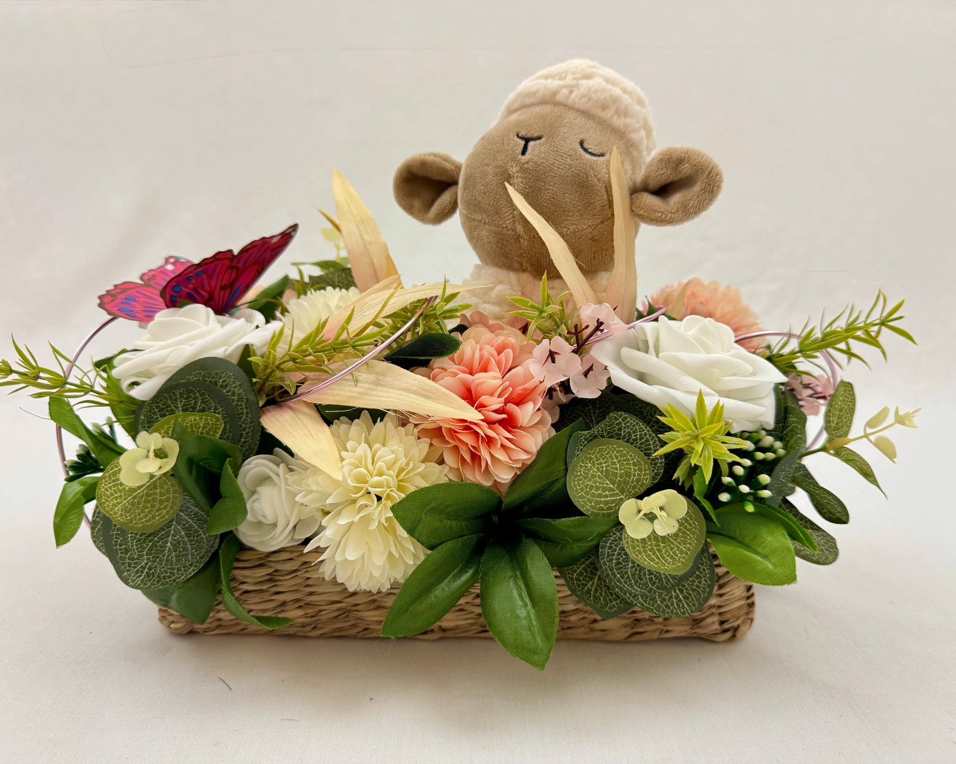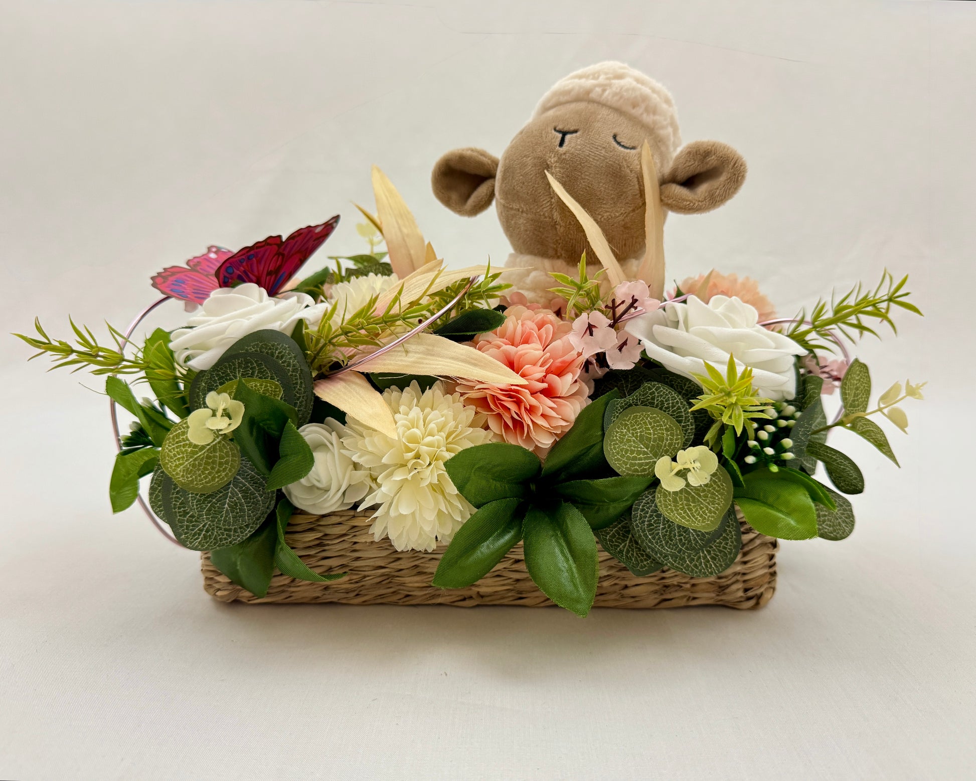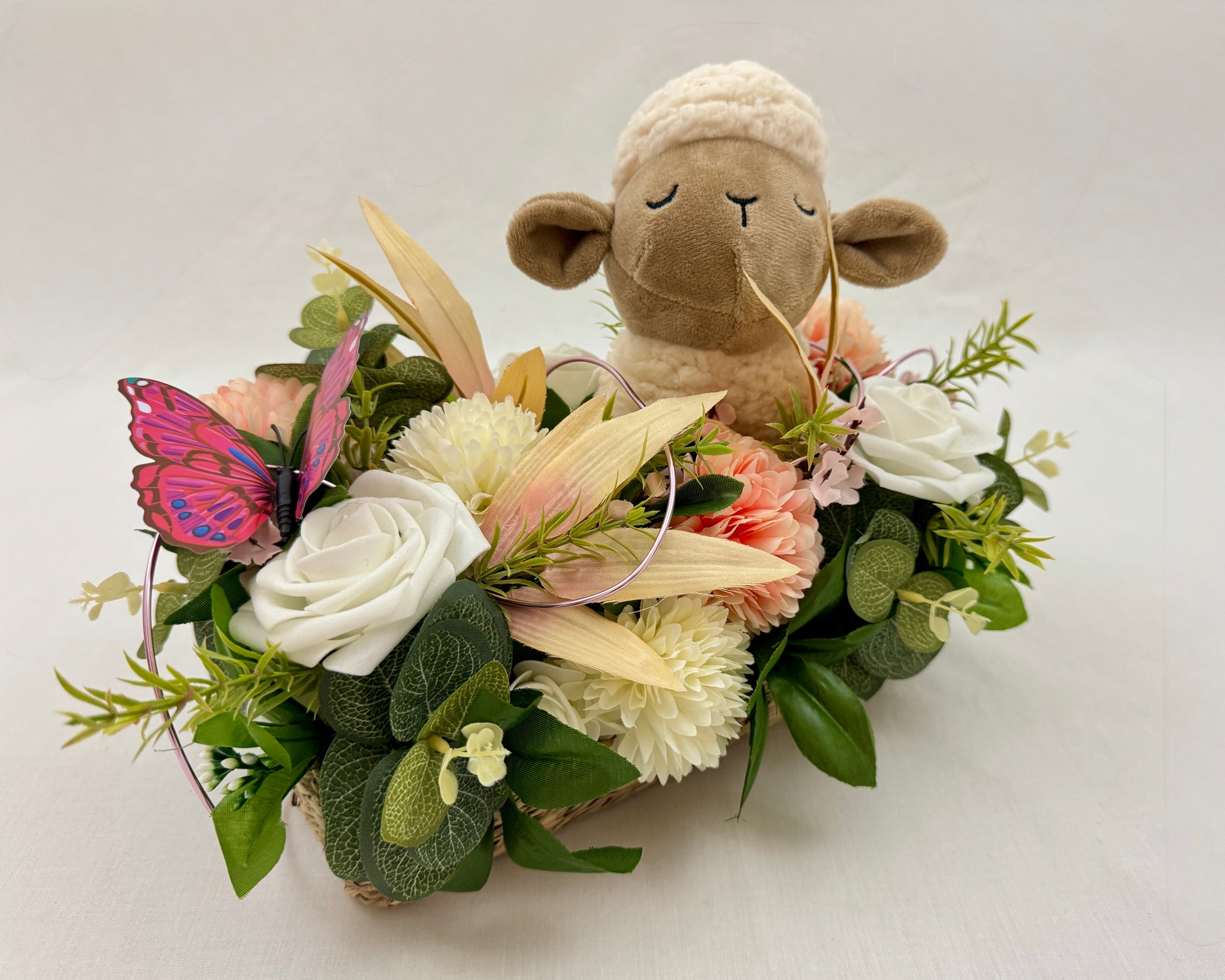 Je zou dit rouwstuk kiezen omdat het voelt als een zacht afscheid vol liefde, alsof je iets moois achterlaat voor iemand die je dierbaar was. De warme kleuren en het natuurlijke mandje geven troost. Het zegt: “je was belangrijk, en ik vergeet je nooit.”